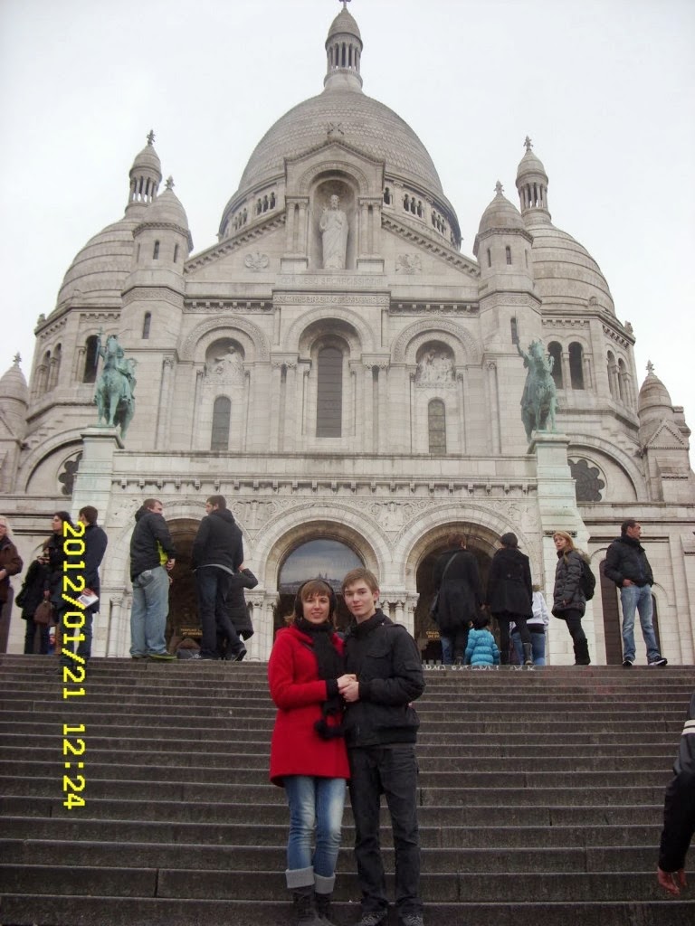 Trzeciego dnia po wyjściu z hotelu, ruszyliśmy nieznanymi nam uliczkami chcąc dostać się do bazyliki Sacre-Coeur. Tego dnia mieliśmy już ustalony plan zwiedzania i nie było problemów z dogadaniem się między nami. Po drodze do bazyliki przeszliśmy ulicą gdzie było pełno bazarów z jedzeniem i różnych restauracji typowo Francuskich. Oczywiście były tam ślimaki i żabie udka, oraz różne dziwne dania, ale nie mieliśmy czasu, żeby zjeść cokolwiek z tych pyszności (?). Potem czekała nas dwukilometrowa droga pod górę, ponieważ bazylika Sacré-Cœur znajduje się na wzgórzu. Po drodze zahaczyliśmy sklep z pamiątkami i tak jak w Londynie, kupiliśmy sobie koszulki z widokiem na Paryż. Potem już bez ociągania ruszyliśmy do naszego celu przez Wzgórze Montmartre – historyczna dzielnica Paryża (XVIII okręg), której centrum stanowi Placu de Tertre, gdzie spotkać można wielu artystów i malarzy, którzy chętnie rysują portrety turystów. Nazwa tego miejsca łączy się z podaniem, według którego na wzgórzu tym męczeńską śmierć poniósł biskup Paryża Święty Dionizy oraz dwóch innych męczenników: Rustyk i Eleuter. Zabudowa tego miejsca odbiega od architektury reszty miasta. Przez długi okres dzielnica ta stanowiła centrum cyganerii artystycznej Paryża. Pod koniec XIX wieku wzgórze zostało przyłączone do Paryża co spowodowało jego szybki rozwój.