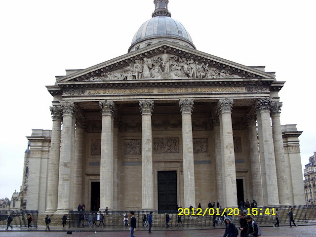 Ostatnim zabytkiem na dziś był Panteon – jest miejscem pamięci i pochówku najwybitniejszych Francuzów, znajduje się w Dzielnicy Łacińskiej Paryża. Budynek powstał w miejscu starochrześcijańskiej świątyni z VI wieku. W XVIII wieku Ludwik XV przebudował popadające w ruinę opactwo na neoklasycystyczną świątynię, na planie krzyża greckiego z kopułą centralna oraz 4 mniejszymi kopulami i kolumnowym portykiem wejściowym. Budowla powstawała przez 30 lat. Tutaj widnieje słynne hasło „Wielkim ludziom wdzięczna ojczyzna”. W kryptach pod budynkiem znajduje się 67 grobów, w tym między innymi grób J. J. Rousseau, Woltera, Emila Zoli, Piotra i Marii Curie oraz wiele innych.