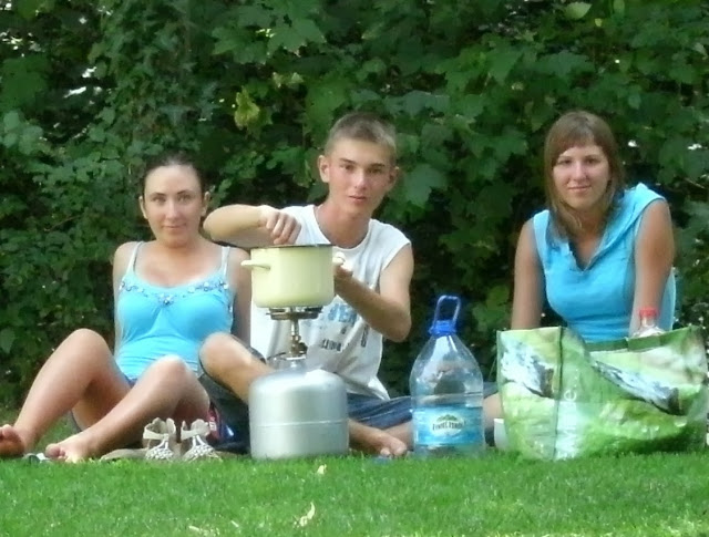 Wzięliśmy jeszcze jedna mapę z Punktu Informacji Turystycznej i poszliśmy szukać sklepu. Gdy wróciliśmy pod nasz DUET Bolek zabrał wszystkich bolkowiczów do parku, w którym zjedliśmy obiad, a na deser świeżo zerwane migdały i śliwki.