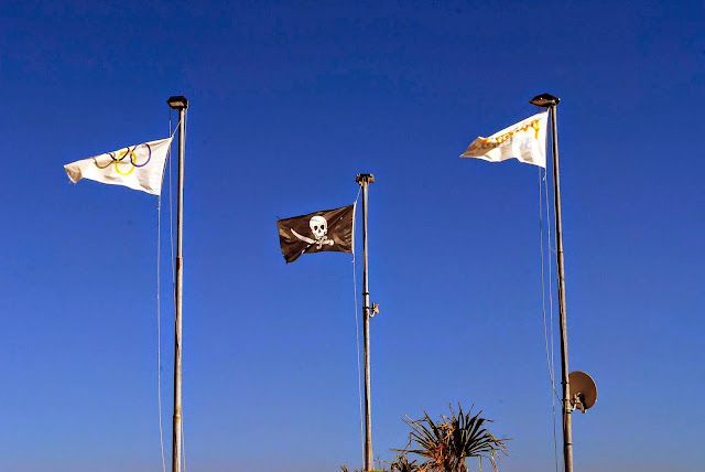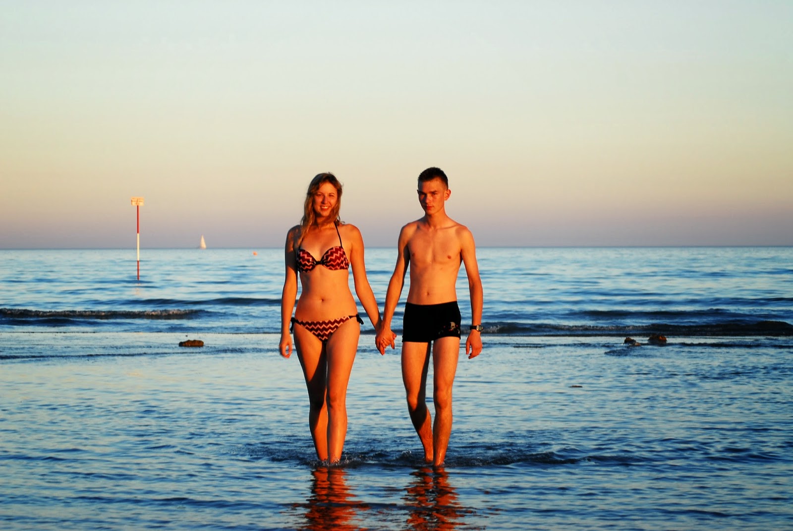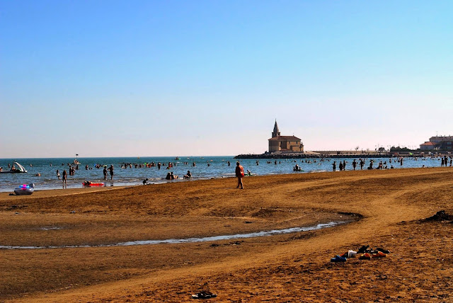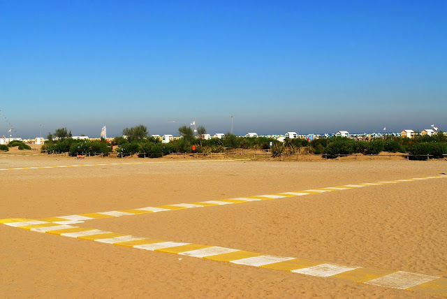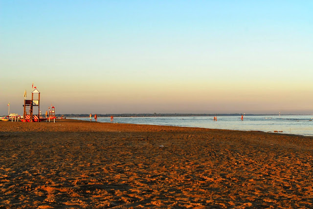 Po obiedzie poszliśmy do marketu, zobaczyłam napis "entrata", więc pchnęłam mocno drzwi i ku mojemu zdziwieniu, uruchomiłam alarm w całym markecie! Okazało się, że drzwi, które otworzyłam, to drzwi ewakuacyjne, a koło napisu "entrata" znajdowała się strzałka pokazująca kierunek w lewo, której niestety nie zauważyłam wcześniej. Michał, Ola i Asia mieli niezły ubaw, mi jednak nie było do śmiechu. Po zakupach poszliśmy na plażę.