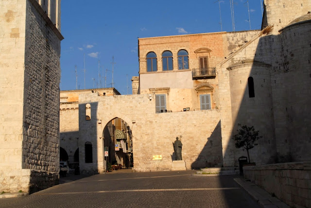 Po drodze zobaczyliśmy Bazylikę Św. Mikołaja – ta monumentalna budowla wzniesiona została w latach 1087 – 1132, w stylu romańskim. Wewnątrz znajduje się wiele ciekawych obiektów. Jednym z nich jest tron biskupa Eliasza oraz XII wieczna, ażurowa obudowa ołtarza, tak zwane cyborium. W mieście Bari szczególnym kultem otacza się postać św. Mikołaja. W X wieku zwłoki świętego zostały przywiezione z Turcji i złożone w tejże bazylice. Wewnątrz świątyni zobaczyć możemy liczne dzieła wspominające św. Mikołaja oraz nagrobek z roku 1593, królowej Polski Bony ze Sforzów. W 1984 roku świątynię tą odwiedził papież Jan Paweł II. Obecnie kościół znajduje się pod opieką zakonu dominikanów.