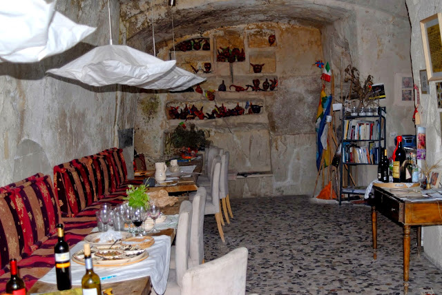 Spacerując po Sassi weszliśmy do jednego z otwartych domostw. Spotkaliśmy tam niezwykłego człowieka, który nas ugościł. Na początku byliśmy dość nieufni, jednak atmosfera jaka tam panowała była po prostu niesamowita. Zostaliśmy zaproszeni na ucztę, ten człowiek wszystko robił tak spokojnie, powoli, a jednak bardzo dokładnie. Grała spokojna muzyka, dostaliśmy wino. Niezwykłe było to, że gdy spytaliśmy ile będzie nas to kosztować, on odpowiedział, że co łaska, bo on nie robi tego dla pieniędzy. Zaserwował nam sucharki, które moczyliśmy w oliwie z ziołami oraz oliwki. Następnie dostaliśmy wodę do picia i muszę przyznać, że nigdy nie piłam tak pysznej! Gdy mieliśmy już wychodzić, kazał nam jeszcze zaczekać, bo przygotował dla nas smażone papryczki. To było niesamowite! Dobrze jest wiedzieć, że są ludzie, którzy potrafią zrobić coś bezinteresownie dla innych. Czasami warto posłuchać intuicji i komuś po prostu zaufać :)