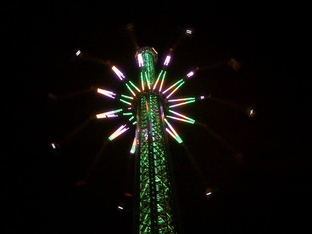 Ola i Asia poszły na dość wysoką karuzelę, natomiast ja i Michał odpoczęliśmy trochę na ławce. Następnie przeszliśmy się jeszcze po tym ogromnym lunaparku, słuchając krzyków ludzi dochodzących z różnych karuzel i kolejek :)