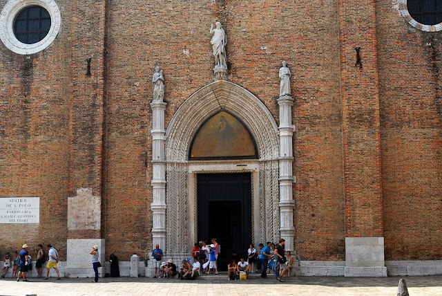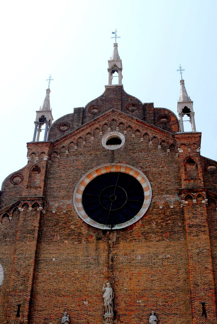 Po drodze zobaczyliśmy Bazylikę św. Jana i Pawła - W XIII w. dominikanie otrzymali od doży Jacopa Tiepola teren, na którym w 1360 r. rozpoczęli budowę kompleksu budynków. Bazylikę poświęcono w 1430 r. Pod koniec XV w. rozpoczęto przebudowę fasady, skupiając się przede wszystkim na bogatym portalu. Świątynia stała się miejscem pochówku dożów i patrycjuszy weneckich. Znajduje się w niej również poliptyk G. Belliniego, obrazy P. Veronese i liczne nagrobki. Do kościoła przylega renesansowa fasada szpitala Scuola di S. Marco.