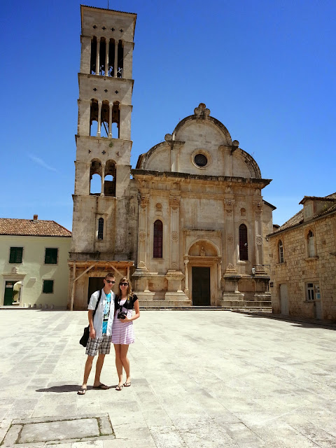 Znajduje się tam Katedra św. Szczepana (chor. Katedrala sv. Stjepana) - katedra pod wezwaniem św. Szczepana, diakona i męczennika, patrona diecezji Hvar i miasta Hvar, znajdująca się na centralnym placu w mieście Hvar, Trgu sv. Stjepana (Rynek). Przez stulecia, przebudowana i odbudowana była pierwotnie kościołem opactwa benedyktyńskiego Marije od Lesne. Niektórzy utrzymują, że katedrą stała się w XIII wieku, gdy biskup swoją siedzibę przeniósł ze Starego Grada (w której obecnie mieści się kościół św. Szczepana) do Hvaru. Jeszcze podczas budowy, budynek został poważnie uszkodzony podczas inwazji tureckiej w 1571. Jednym z długoletnich biskupów, który zadbał o środki finansowe i materiały do odbudowy katedry był Hanibal Lucić. Poświęcił ją w 1703 roku biskup Rajmund Asperti.