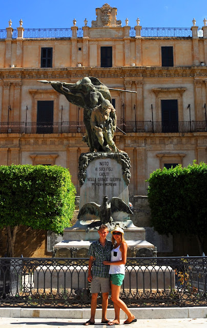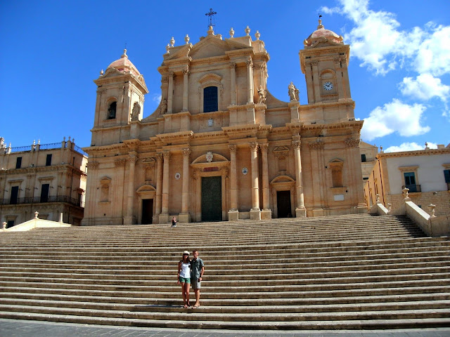 O 8:30 wyjechaliśmy z Syrakuz, a o godzinie 9 byliśmy już na miejscu w Noto, jest to miasteczko we wschodniej części Sycylii, którego początki sięgają IX w. p. n. e. Pałace, kościoły, zakony, kolumny, balustrady i inne elementy dekoracyjne zbudowane są ze skały o charakterystycznej ciepłej barwie przypominającej kolor miodu. Ze względu na zabudowę z tufu - miękkiej skały o pochodzeniu wulkanicznym - Noto nazywane jest "kamiennym ogrodem". Z kolei przez UNESCO miasto zostało nazwane stolicą i perłą baroku sycylijskiego.