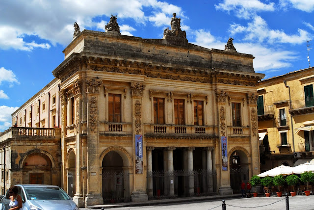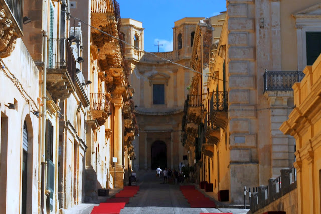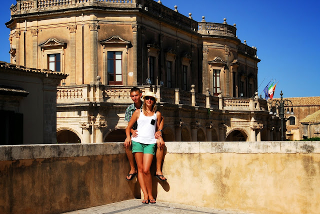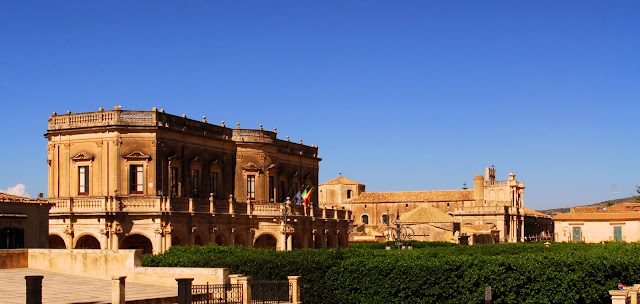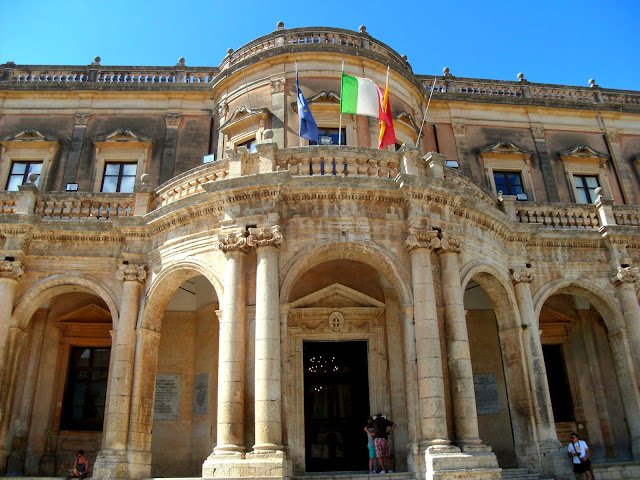 Z daleka zobaczyliśmy już Palazzo Ducezio, który będzie również widoczny na późniejszych zdjęciach ;) Pałac zbudowany został w roku 1748 jest dzisiaj siedzibą urzędu miasta i ozdobiony fasadą z kolumnami i kamiennymi balkonami przekrywającymi arkady stanowi wspaniały przykład rozmachu, z jakim budowano nowe Noto.