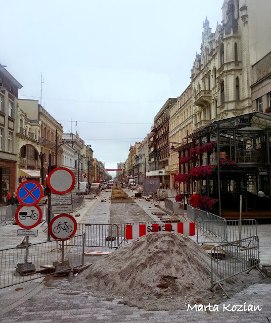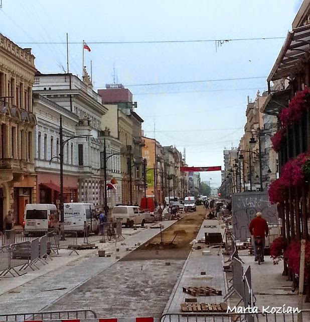 Ulica Piotrkowska jest główną arterią Łodzi, najpiękniejszą ulicą miasta i jednym z najdłuższych deptaków (4,2 km) w Europie, wzdłuż której ciągnie się szereg eklektycznych i modernistycznych kamienic z XIX i XX w. Od samego początku istnienia (początek XIX w.) ulica stanowiła oś centralną, naokoło której rozbudowywało się miasto. Najpierw tworzyła główny trakt komunikacyjny, a z czasem zmieniła się w wizytówkę miasta. Architektura Piotrkowskiej i wszystkie budowle znajdujące się w jej pobliżu tworzą specyficzną atmosferę o kulturowym charakterze. W 1990 r. ulicę poddano rewitalizacji i zamieniono w deptak, na których znajduje się Galeria Wielkich Łodzian (rzeźby wykonane w brązie upamiętniające znanych Łodzian) i Aleja Gwiazd (stworzona na wzór hollywoodzki). Niestety podczas naszej wizyty cała ulica była rozkopana.