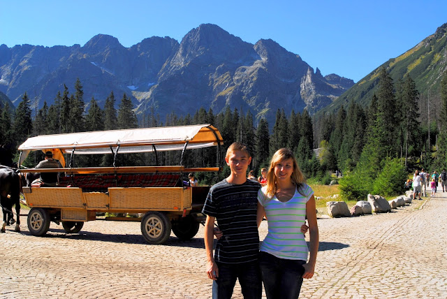 Budzik zadzwonił o godzinie 7... Udało nam się zwlec z łóżka, było lepiej niż się spodziewałam ;) Szybko się ogarnęliśmy, obudziliśmy rodziców i bez śniadania wybraliśmy się na Morskie Oko. Rodzice zawieźli nas na parking, po czym odjechali, a my staliśmy w kolejce, żeby kupić bilety. Było nam strasznie zimno...