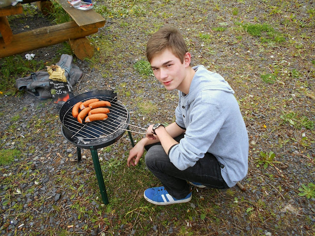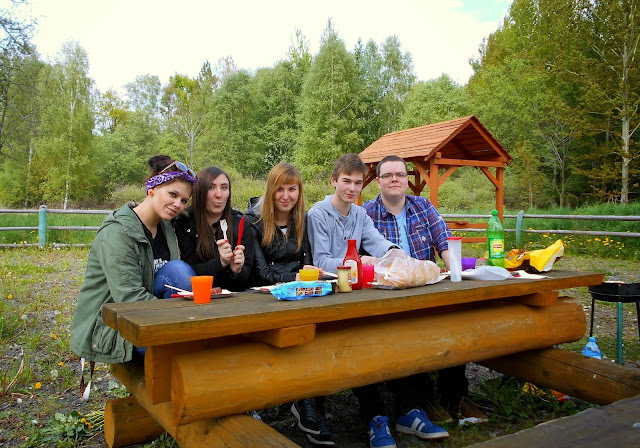 Znaleźliśmy więc inne miejsce, bardziej przyjazne. Michał rozpalił grilla, my przygotowaliśmy stół i w końcu mogliśmy coś zjeść.