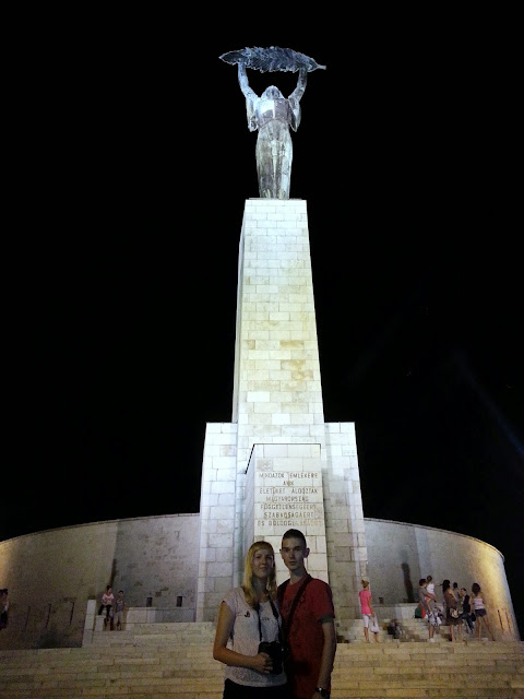 Najpierw postanowiliśmy zdobyć Górę Gellerta. Jak na pierwszy dzień, a właściwie noc, zwiedzania to postawiliśmy sobie dość wysoko poprzeczkę. No ale jakoś daliśmy radę. Po drodze zaczepiła nas grupa pijanych Węgrów, usłyszeliśmy za sobą tylko "Blondi z Rosji" (bardzo często na Bolku ludzie biorą nas za Rosjan...) i od razu zorientowaliśmy się o kim mowa ;) Śledzili nas przez chwilę, jednak chyba odpadli podczas wspinaczki na górę.