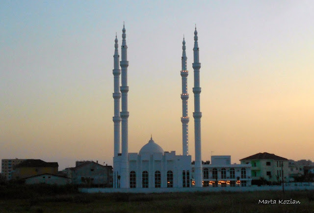 Jako pierwszą zobaczyliśmy Katedrę św. Pawła w Tiranie (alb. Katedralja e Shen Palit) - rzymskokatolicka katedra archidiecezji Tirany-Durrës w stolicy Albanii. Usytuowana nad brzegiem rzeki Lany. Obecnie największa świątynia katolicka w kraju. Jest to nowoczesna świątynia wybudowana w latach 2000-2001. We wnętrzu znajdują się witraże przedstawiające Matkę Teresę i papieża Jana Pawła II. Mieści się przy bulwarze Zhan D'Ark.