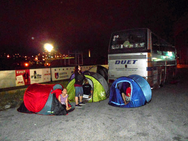 Zatrzymaliśmy się na najbliższej stacji paliw, 70 km od Sarajewa, żeby coś zjeść i się umyć. Kolejka do toalet była krótka, za to do umywalek (były tylko 3) ciągnęła się strasznie. W końcu każdy chciał się umyć ;) Mycie się w umywalkach jest genialne! Uwielbiamy zdziwione miny ludzi, gdy widzą jak myjemy głowy ;) Okazało się, że "poranna toaleta", zajęła nam aż godzinę! Ale przynajmniej byliśmy czyści i czuliśmy się świeżo.