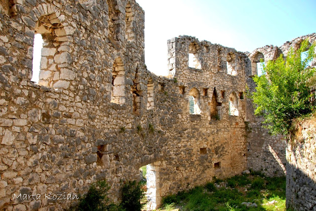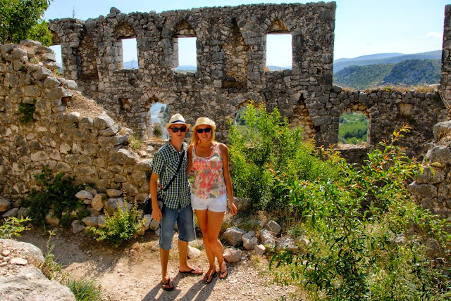 Dość szybko znaleźliśmy się na szczycie przy pozostałościach średniowiecznej tureckiej twierdzy, wzniesionej na gruzach starożytnego rzymskiego zamku. Zamek jest nie duży i zostało z niego naprawdę niewiele, głownie mury. Najciekawszym jego fragmentem jest wieża o wysokości mniej więcej trzypiętrowego bloku, na której najwyższą kondygnację można wejść. My jednak się nie odważyliśmy, schody są bardzo strome.