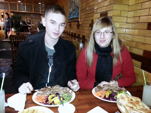Po tak intensywnym dniu zrobiliśmy się głodni... Tata Marty zabrał nas więc do jednej z restauracji, w której podają najlepszy kebab z baraniny, którego jeszcze nigdy nie mieliśmy okazji spróbować. Trzeba przyznać, że jest to zupełnie inny smak, niż ten, który znamy, ale smakował nam bardzo! Jednak porcje nas po prostu przerosły, były gigantyczne ;)