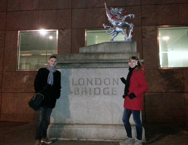 Z pełnymi żołądkami ruszyliśmy do metra... postanowiliśmy odwiedzić miejsca, w których byliśmy w roku 2011 :) Jednak zaliczyliśmy zabawną wpadkę. Widząc na mapie metra stację "London Bridge", z niewiadomych powodów pomyliliśmy go z "Tower Bridge", do którego chcieliśmy dotrzeć... Byliśmy bardzo zaskoczeni, gdy pewien czarnoskóry mężczyzna uświadomił nam ten błąd ;) Oj, zmęczenie chyba dało nam się we znaki...
