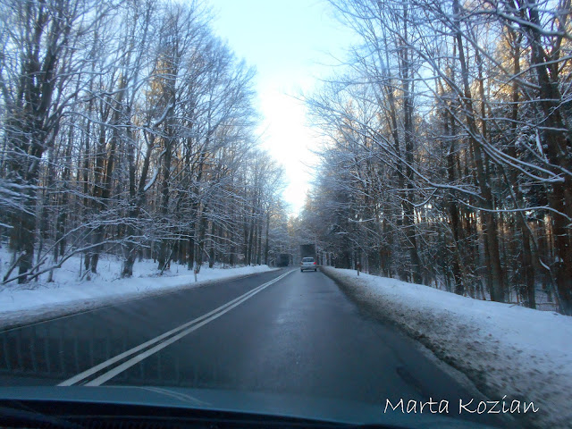Gdy przed Jelenią Górą odbiliśmy na Karpacz droga stała się nie za ciekawa... Trzeba było zdjąć nogę z gazu, bo było niesamowicie ślisko.