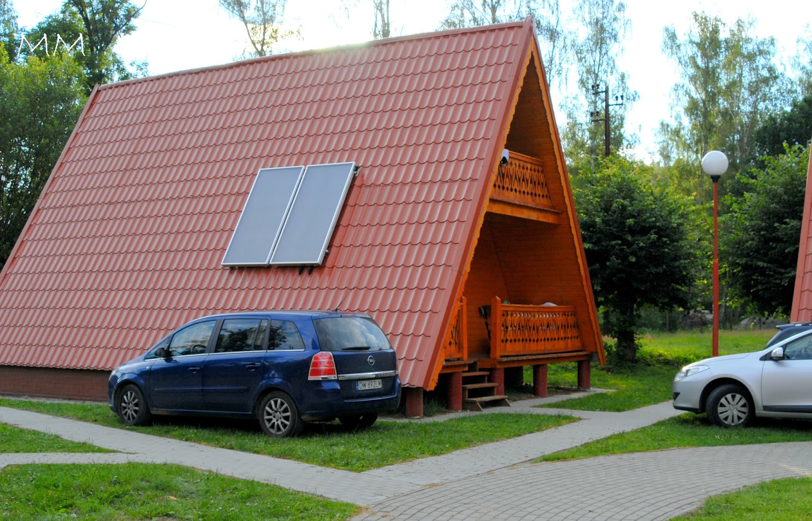 Domek letniskowy typu Brda, w którym mieliśmy spędzić ten tydzień bardzo przypadł nam do gustu. Był malutki (bo trzeba pamiętać o tym, że mieszkaliśmy tylko w połowie domku), lecz znajdowało się w nim wszystko czego potrzebowaliśmy - toaleta, prysznic z ciepłą wodą, skromny aneks kuchenny. Jednak największa dla nas frajdą był balkon i taras przed domkiem ;)