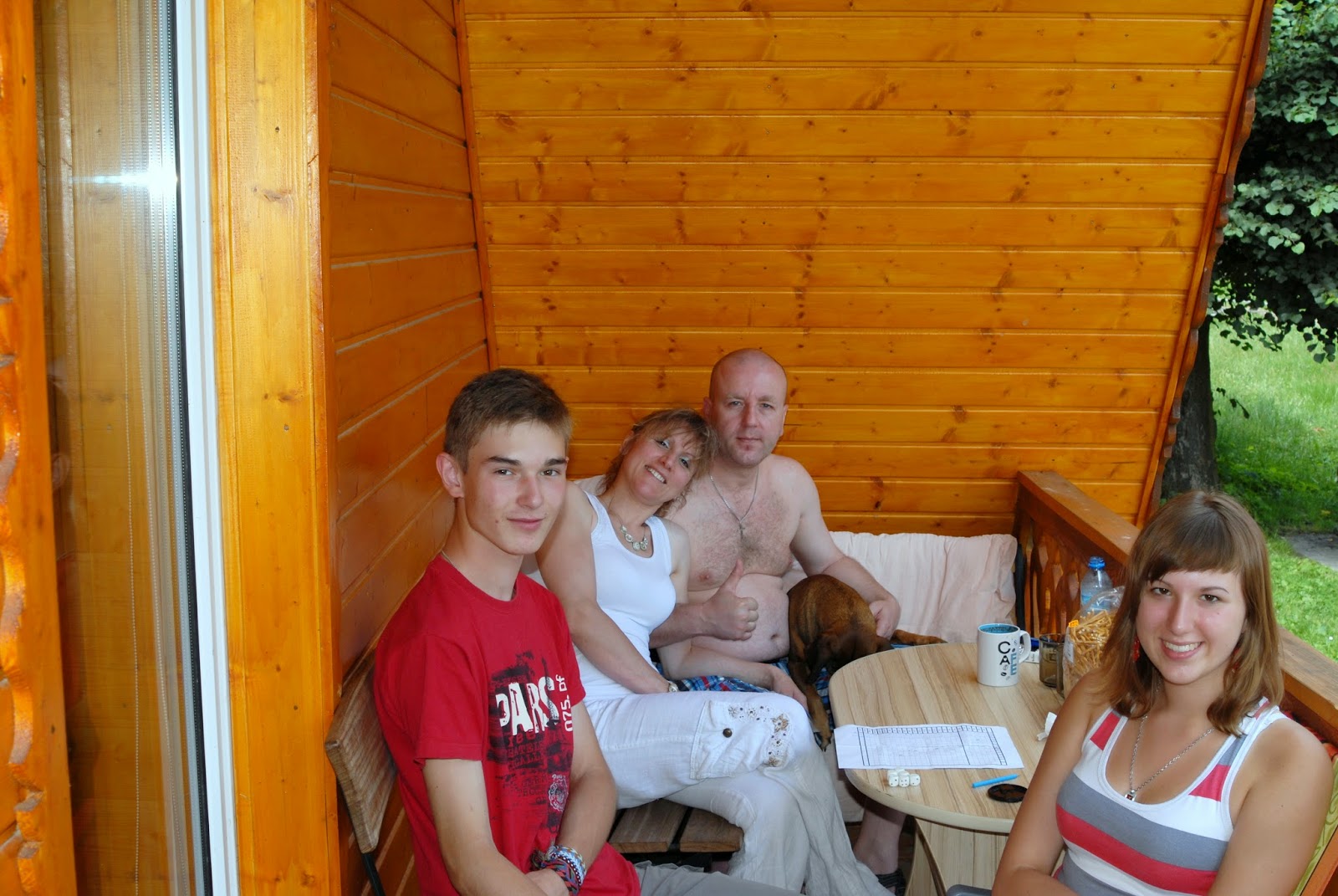 10 lipca 2012, czyli nasz drugi dzień pobytu w Sudetach. Obudziło nas wspaniałe słońce, więc pogoda zapowiadała się naprawdę dobrze. Rano poszliśmy na śniadanie do Karczmy, a następnie posiedzieliśmy na naszym tarasie i graliśmy w piłkę. To miejcie było cudowne, nie mogliśmy się nim nacieszyć :)