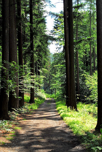Tak więc ruszyliśmy w stronę lasu, który prowadzi w kierunku żółtego szlaku. Droga z nieznanym nam jeszcze aparatem się wydłużała, bo nie chciałam robić zdjęć na automacie i bawiłam się ustawieniami manualnym, testowaliśmy również obiektyw makro (co też zajmowało chwilę, bo często zmienialiśmy obiektywy) i nasz nowy (aktualnie nie nadający się już do niczego) statyw :) Zachwycaliśmy się każdym widokiem, więc wszystko trzeba było sfotografować... Choć jedne zdjęcia wychodziły lepiej, inne gorzej to i tak w miarę szybko zapoznawaliśmy ten aparat. Choć muszę się przyznać, że do dziś czasami mnie zadziwia i wciąż odkrywam go na nowo, mimo że od 2012 roku towarzyszy nam na każdej wyprawie :)