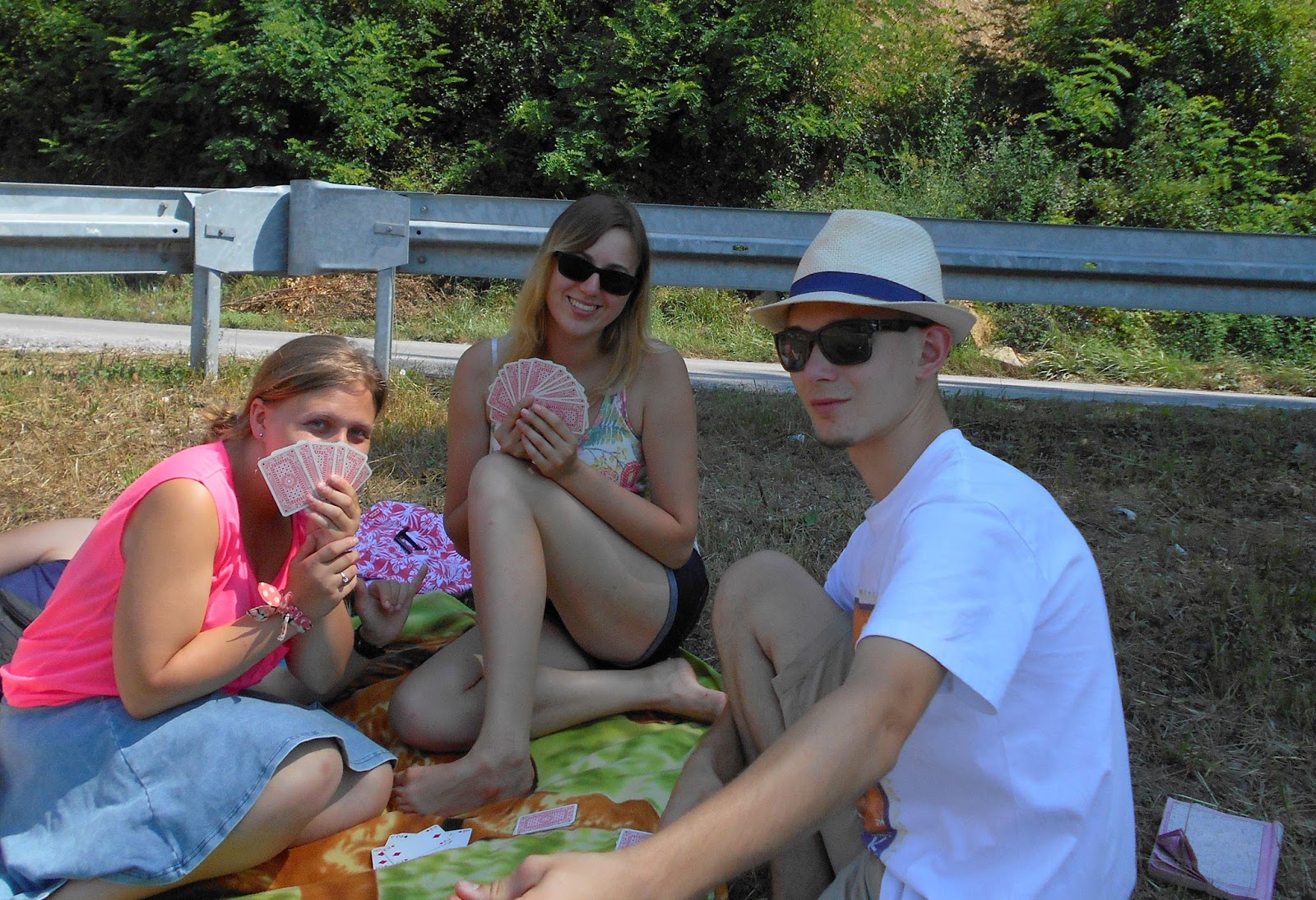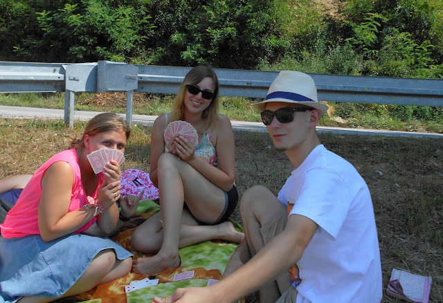 Przeszliśmy prawie całą mieścinę, aż w końcu udało nam się znaleźć jakiś wolny skrawek cienia! Rozłożyliśmy tam koc, odpoczywaliśmy i graliśmy w karty, oglądaliśmy również zdjęcia, które do tej pory zrobiliśmy.