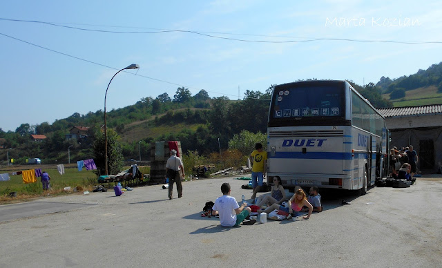 Na terenie fabryki spało się nam naprawdę dobrze, niestety nasz sen przerwał po godzinie 6 rano jeden z jej pracowników... Okazało się, że w miejscu, w którym wczoraj kazano nam zaparkować, nie wolno jednak parkować. Pan Tadziu był zmuszony przeparkować DUET, a my z naszymi karimatami przenieśliśmy się na trawnik. Na trawniku nie spało się już tak dobrze, poszliśmy więc umyć się w kraniku, a następnie zjedliśmy śniadanie - spaghetti!