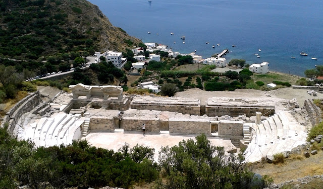 Wśród malowniczego rumowiska na szerokim tarasie z przepięknym widokiem na morze da się wyróżnić dobrze zachowaną widownię starożytnego amfiteatru. Latem od czasu do czasu odbywają się w nim spektakle festiwalu Milos. Amfiteatr (i całe zrujnowane miasto) mają niesamowita właściwość akustyczną, można tu usłyszeć rozmowy prowadzone w porcie położonym 200 metrów niżej.
