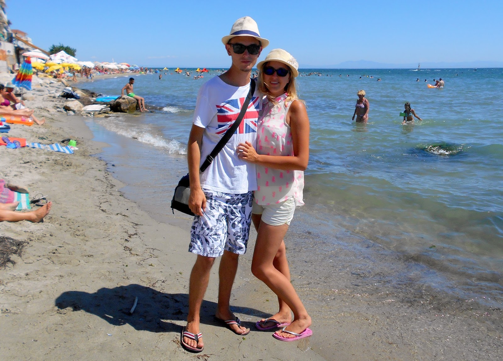 Spacer po mieście jeszcze bardziej utwierdził nas w przekonaniu, że nie nadajemy się do takich miejsc ani trochę, wolimy miasta, które możemy zwiedzić, w których możemy zobaczyć coś nowego, ciekawego... Lubimy zwiedzać, podróżować, odkrywać i pod żadnym pozorem nie potrafimy całego dnia zmarnować na plaży (no chyba że tą plażą byłaby np. Sarakiniko ;) ). Wracając pod autokar wstąpiliśmy do sklepu. Nie mając co robić poszliśmy na plażę i choć woda nie zachęcała do kąpieli to wskoczyliśmy do niej by trochę popływać. Koło plaży znajdowały się prysznice, z których oczywiście skorzystaliśmy ;) Następnie poszliśmy ugotować sobie ryż z sosem i do godziny 18 spaliśmy w cieniu malutkiego drzewa. Obudziło nas słońce, które po tych trzech godzinach snu, świeciło nam już w karimaty... wstaliśmy więc i poszliśmy do knajpki na gyrosa. O godzinie 20 wsiedliśmy do autokaru i ruszyliśmy w drogę do Bułgarii.