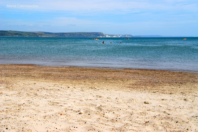 Gdy tylko dotarliśmy do celu, od razu skierowaliśmy się w stronę Weymouth Beach. To naprawdę spory kawał piaszczysto-kamienistej plaży ;) Widoki zapierały dech w piersiach... morze, malownicze domki przy plaży, widoczne w oddali klify i fort, coś pięknego! Nie zastanawiając się długo rozłożyliśmy się na plaży, by móc trochę poleniuchować ;)
