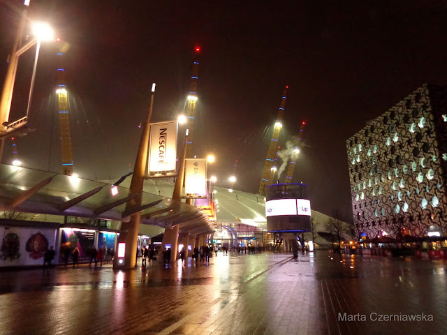 Pod garażem na Willesden przesiedliśmy się w autobus jadący prosto na Perivale. Będąc już w domu zjedliśmy obiad, trochę odpoczęliśmy i... tata wpadł na pomysł, że może jeszcze przejedziemy się do centrum zobaczyć ozdoby. No ale tak szkoda tylko do centrum... szybko sprawdziliśmy, o której odpływa ostatni autobus wodny przy Hali O2 i po godzinie 21 ruszyliśmy w drogę. Metrem jechaliśmy trochę ponad pół godziny i naszym oczom ukazała się hala :)
