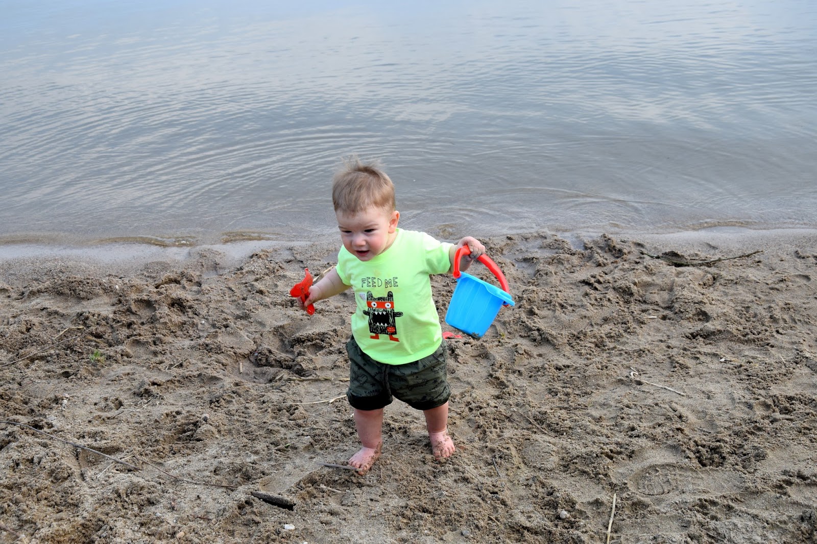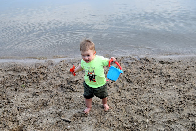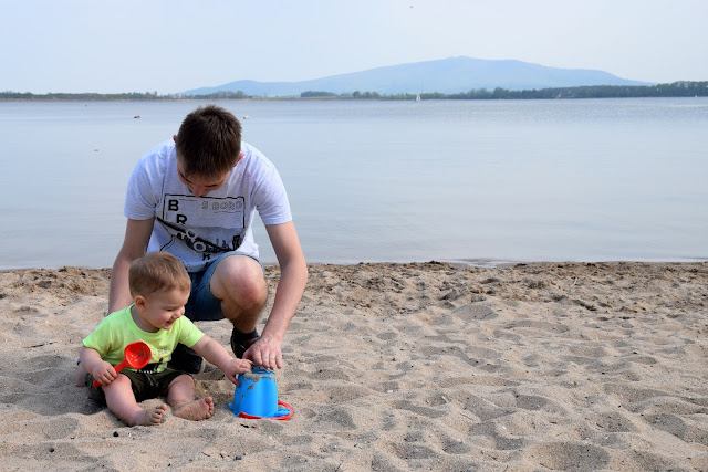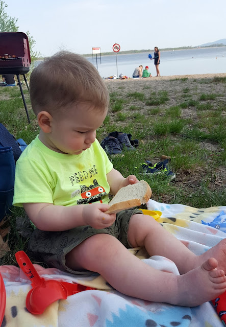 Kuba był zachwycony taką ilością piasku i wody, dosłownie nie mogliśmy go odciągnąć od brzegu... na szczęście na chwilę udało nam się go zając jedzeniem, w końcu ten mały głodomor bardzo lubi jeść :)