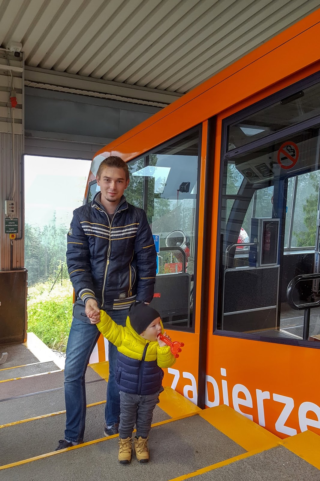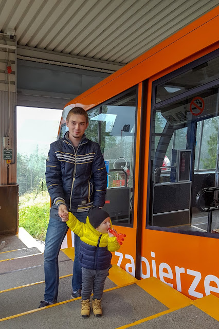 Postanowiliśmy, że wjedziemy kolejką na Gubałówkę! Pomału zaczynał kropić deszcz i robiło się coraz chłodniej... Kuba za to był zachwycony kolejką. W końcu to wielki fan pojazdów różnego typu 😅