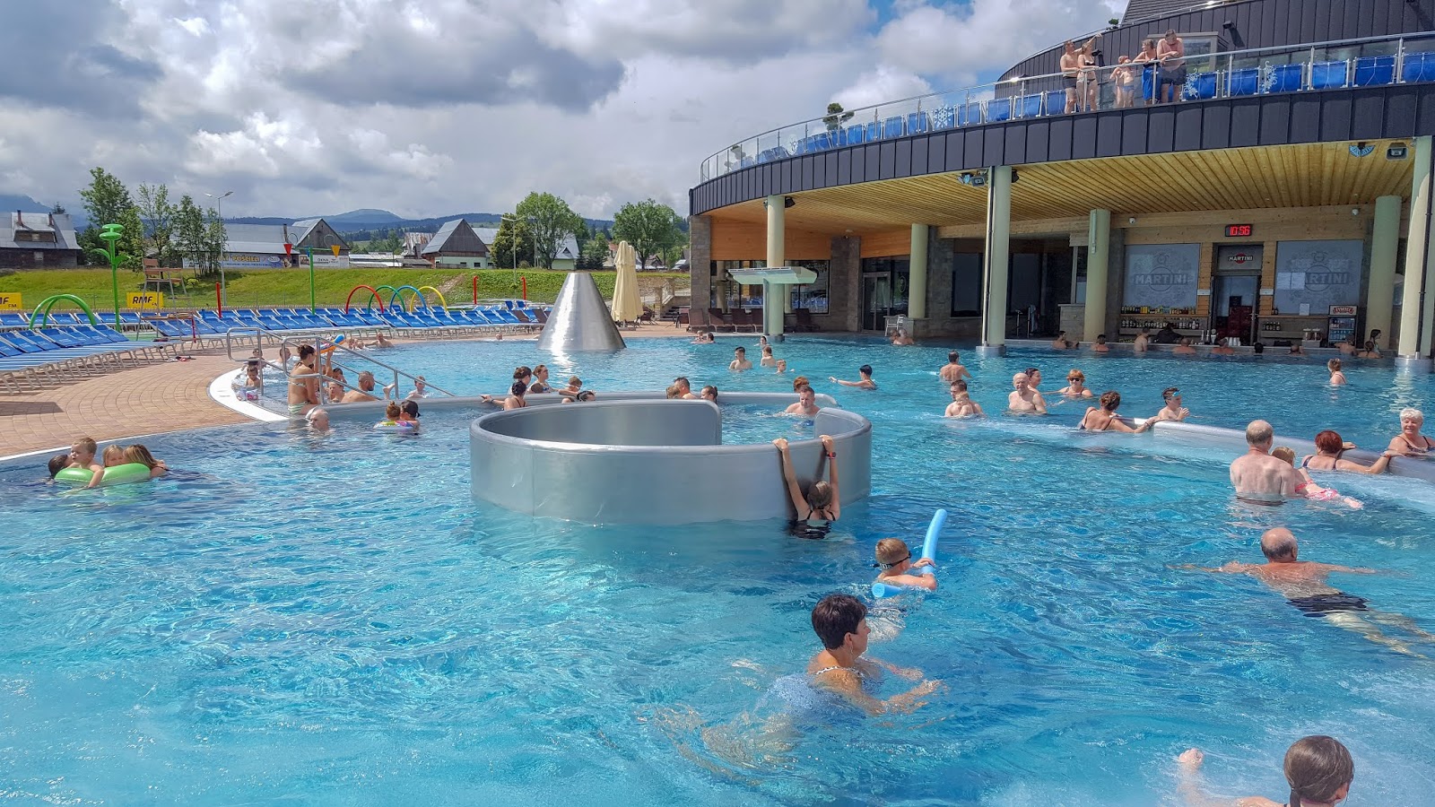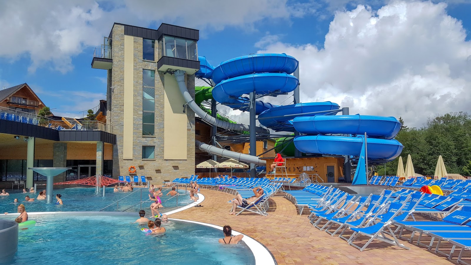 Chwilę popluskaliśmy się w jacuzzi, a następnie wypłynęliśmy na zewnątrz. Woda była tak przyjemnie ciepła. Termy oferują mnóstwo różnych atrakcji, są zjeżdżalnie, miejsce, w którym można wywołać niezłą falę, baseny rekreacyjne i sportowe, rewelacyjna strefa dziecięca (jest nawet sauna dla maluchów!). Z pewnością każdy znajdzie tu coś dla siebie.