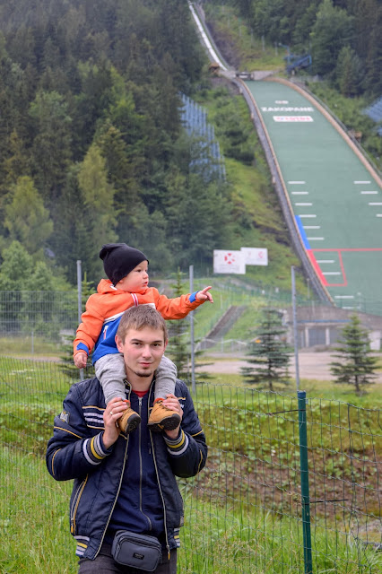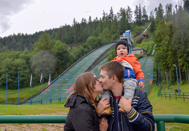 Po drzemce ruszyliśmy do Zakopanego, by pokazać Kubusiowi skocznie! Pogoda była mega zdradliwa, raz padało, a raz nie. No cóż, najwyżej zmokniemy 😅