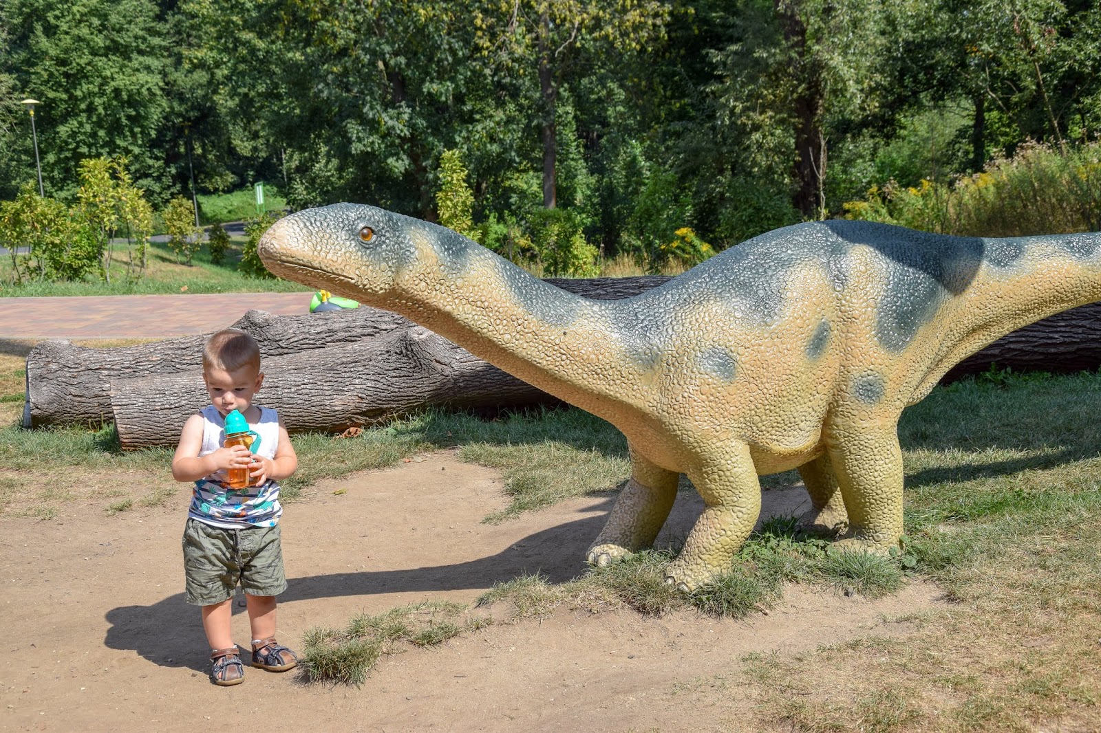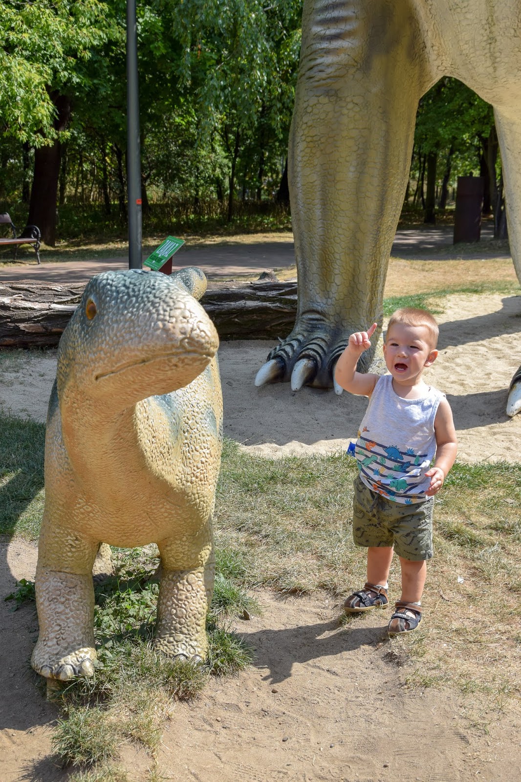 Zaraz po wejściu do parku Kubę przywitał pierwszy dinozaur!