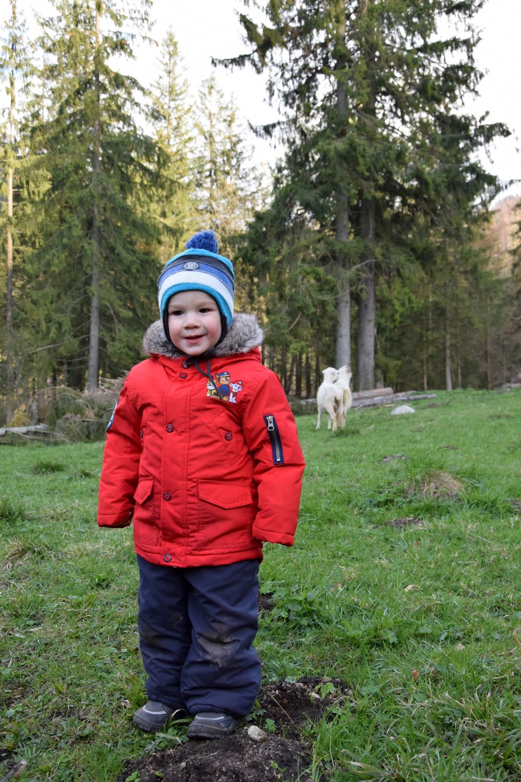Kuba uwielbia zwierzęta, dlatego gdy zobaczył owieczki był zachwycony. Nie mogliśmy go odciągnąć, chciał tam stać i patrzeć... Owce powoli schodziły ze zbocza, więc wytłumaczyliśmy Kubusiowi, że idą już spać... długo opowiadał o tym wydarzeniu każdemu 😅