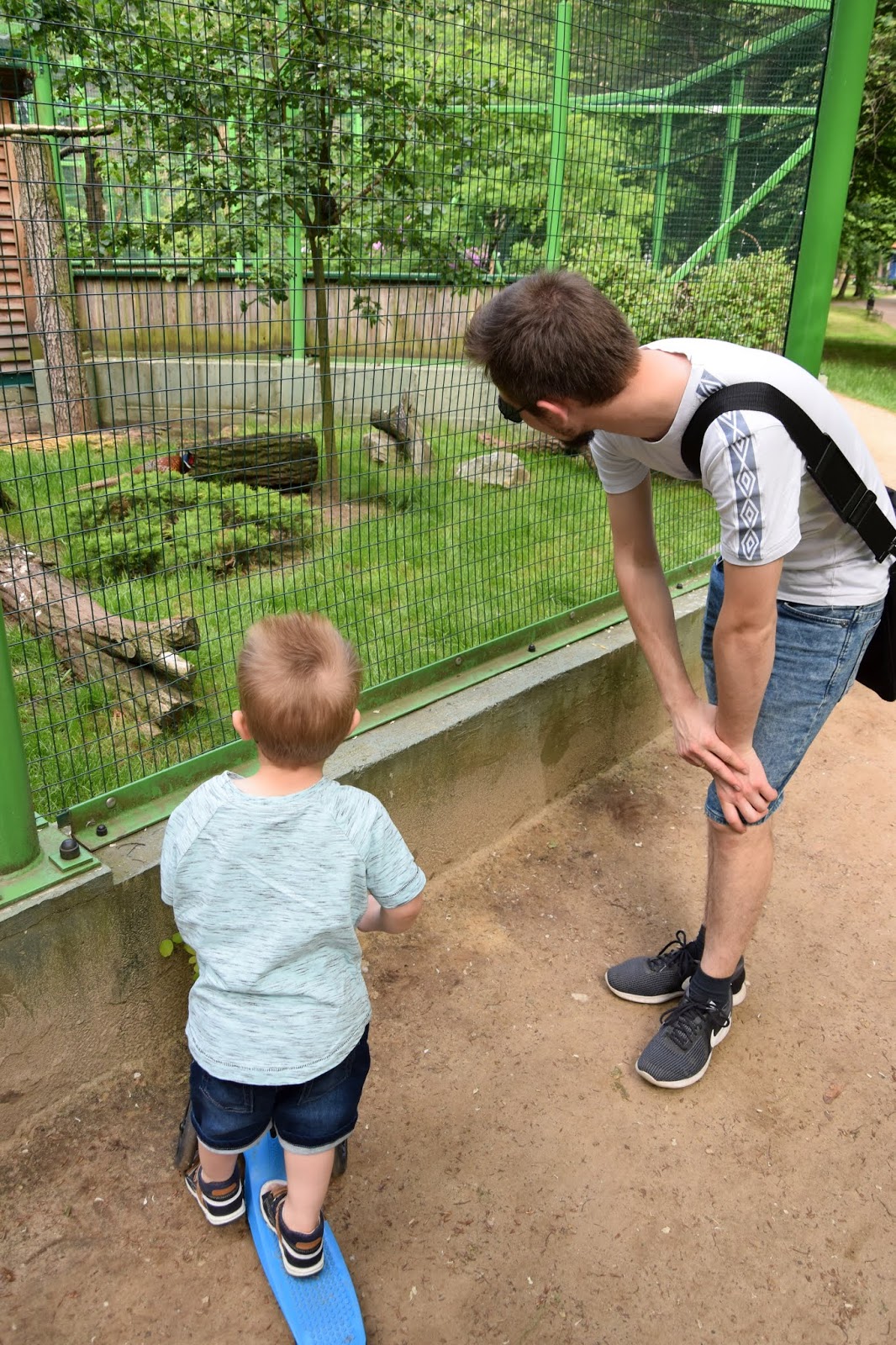 W trakcie naszego spaceru podeszliśmy do każdej możliwej klatki i z zaciekawieniem oglądaliśmy znajdujące się w nich gatunki ptaków. Kuba uwielbia oglądać zwierzątka, więc dla niego również była to niezwykła atrakcja. Idąc dalej trafiliśmy na największy model dinozaura, a jest nim diplodok, który ma aż 33 m! Warto podkreślić, że modele dinozaurów są naturalnej wielkości.