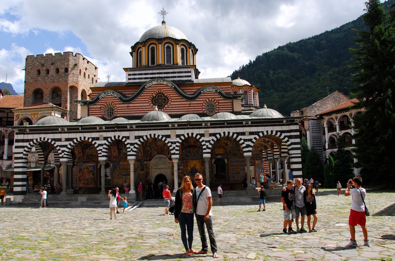 Było już późno w nocy, gdy przekraczaliśmy granicę z Bułgarią. Zaraz po tym zatrzymaliśmy się na zakupy, choć my tylko wyszliśmy skorzystać z toalety. Po północy ruszyliśmy dalej, a Bolek parę razy zapytał czy są wszyscy, słysząc odpowiedź twierdzącą mogliśmy śmiało jechać dalej. Przejechaliśmy już sporo kilometrów, gdy okazało się, że brakuje jednego bolkowicza! Został na granicy. Udało się z nim skontaktować, bo swój telefon zostawił w autokarze i zadzwonił z pożyczonego telefonu na swój numer, lecz Bolek powiedział, że nie zawrócimy i musi on sam do nas dojechać. Było późno, ciemno i trochę chłodno... Zatrzymała nas nawet policja, by nas poinformować, że jeden z naszych został na granicy. Zatrzymaliśmy się 50 km przed celem podróży, by w jakiejś zatoczce spędzić noc, a nasz kolega miał do nas dojechać rano. Wstaliśmy po godzinie 9, okazało się wtedy, że nasz kolega dojechał do nas o godzinie 8 rano. Zjedliśmy śniadanie i o 11 ruszyliśmy w drogę, tym razem w pełnym składzie ;) Droga była kręta i pod górę, więc nasz biedny DUET ledwo dawał radę, ale kolejny raz nas nie zawiódł. Po godzinnej jeździe byliśmy u celu, szybko przebraliśmy się w odpowiednie stroje i ruszyliśmy podbijać Monastyr :)