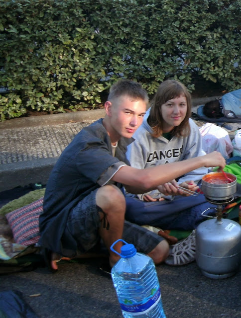 Koło 14:30 skończyło nam się picie, więc Michał pobiegł do małego marketu na camping. Ja i Ola zostałyśmy na kocu i pilnowałyśmy rzeczy. Po jakimś czasie zauważyłyśmy zbliżającego się faceta, który dość dziwnie nam się przyglądał i coś trzymał w rękach. Trochę się wystraszyłyśmy, cały czas miałyśmy go na oku, ale tak w razie czego, to zaplanowałyśmy sobie już ucieczkę ;) Okazało się, że to co trzymał w rękach, to lornetka, a facet sobie poszedł. Byłyśmy bardzo szczęśliwe, gdy wrócił Michał :)