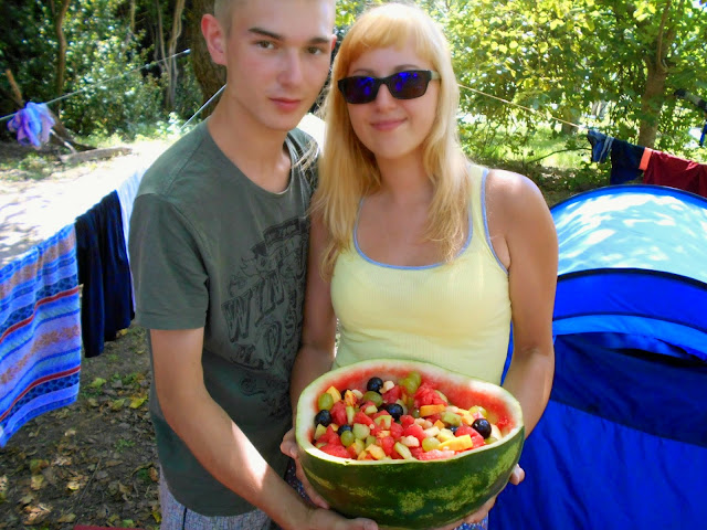 Po szybkim rozłożeniu namiotów od razu poszliśmy umyć się pod normalnym prysznicem, potem z Olą zrobiłyśmy szybkie pranie, a Michał w tym czasie pilnował ładujących się telefonów i aparatów, grając jednocześnie na gitarze, więc dookoła niego zebrała się spora grupa bolkowiczów. Gdy już wszystko było gotowe, a Michał pomógł mi wykręcić i rozwiesić pranie, mogliśmy w końcu zająć się jedzeniem. Było cudownie! :)
