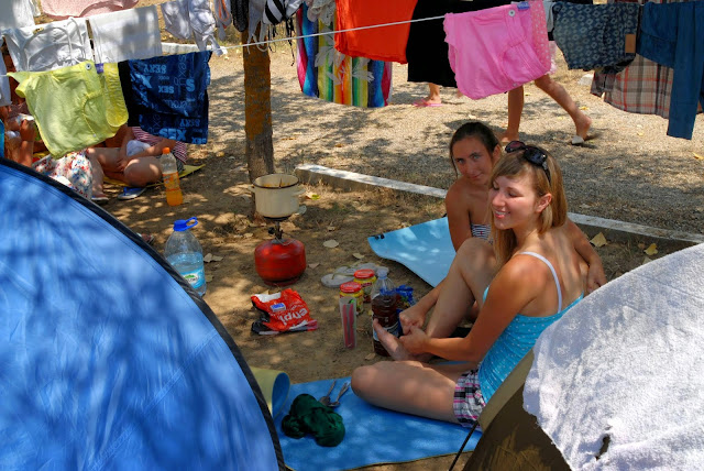 Po szybkim rozłożeniu namiotów od razu poszliśmy umyć się pod normalnym prysznicem, potem z Olą zrobiłyśmy szybkie pranie, a Michał w tym czasie pilnował ładujących się telefonów i aparatów, grając jednocześnie na gitarze, więc dookoła niego zebrała się spora grupa bolkowiczów. Gdy już wszystko było gotowe, a Michał pomógł mi wykręcić i rozwiesić pranie, mogliśmy w końcu zająć się jedzeniem. Było cudownie! :)