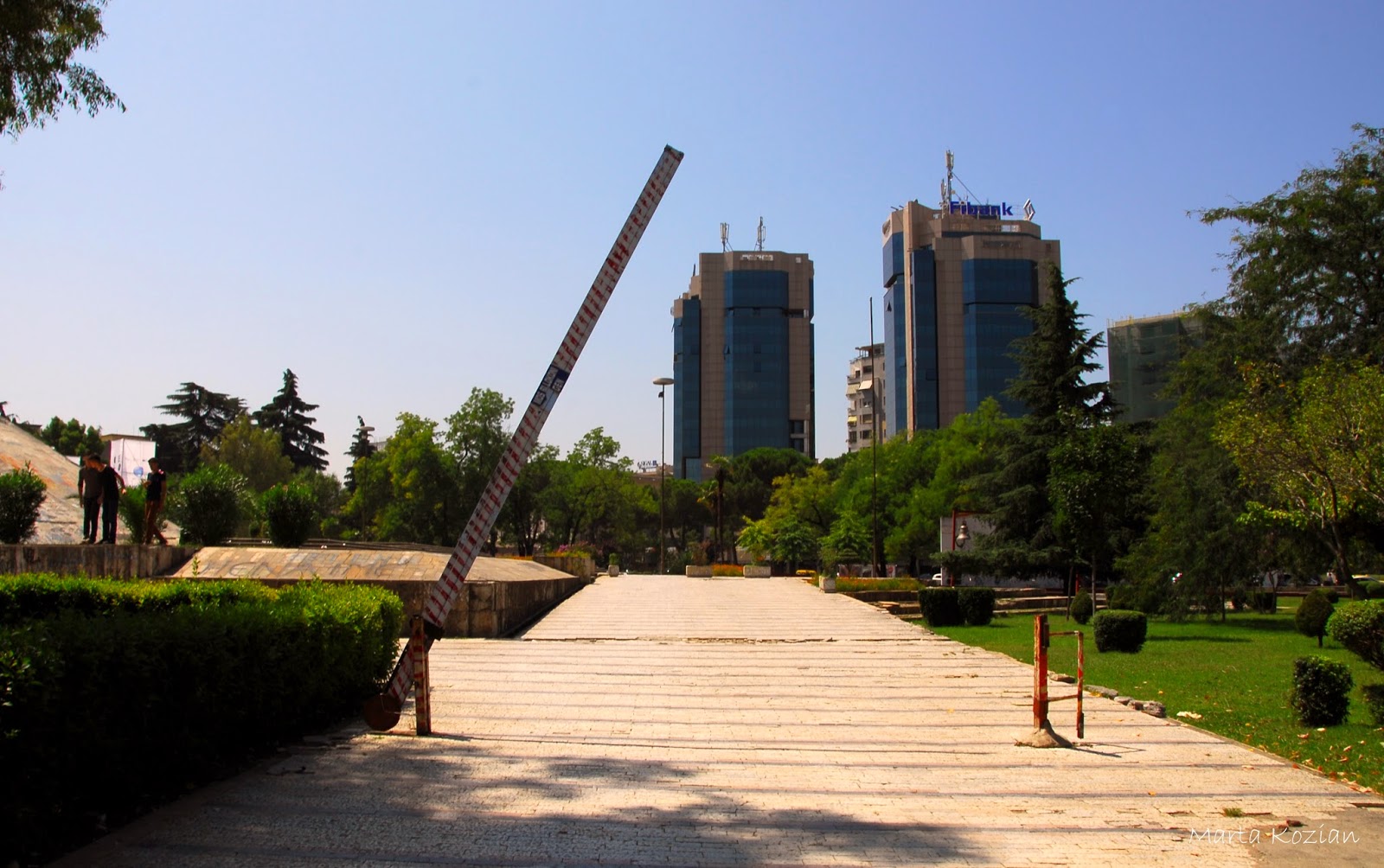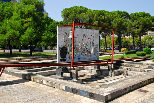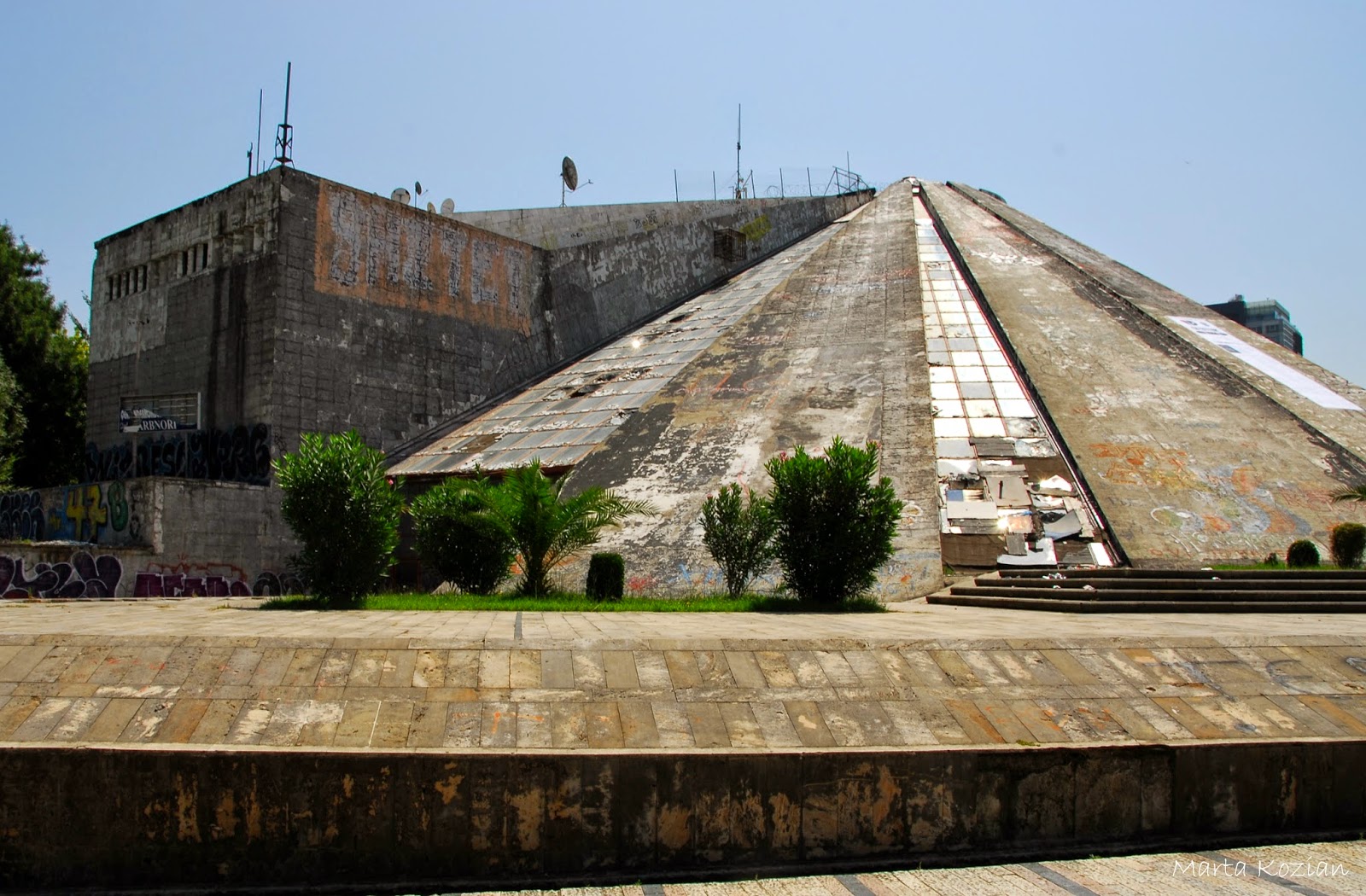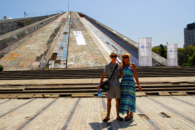 Idąc dalej dotraliśmy do tzw. "Piramidy" - Otwarta w 1988 roku jako muzeum ku czci albańskiego dyktatora, Envera Hodży, została zaprojektowana zresztą przez jego córkę, Pranverę. Prawdopodobnie ta monumentalna konstrukcja należy do najdroższych wzniesionych w Albanii. Po upadku komunizmu wewnątrz powstało centrum konferencyjne, kulturalne oraz dyskoteka. Dziś oficjalna nazwa Piramidy to Międzynarodowe Centrum Kultury. Tu wygłaszał swoją mowę goszcząc w Tiranie George Bush. Aktualnie prowadzone są prace nad zmianą wizerunku piramidy. Co ciekawe, powierzono je firmie związanej z córką Hodży. W 1999 roku tuż przed budynkiem postawiono Dzwon Pokoju.
