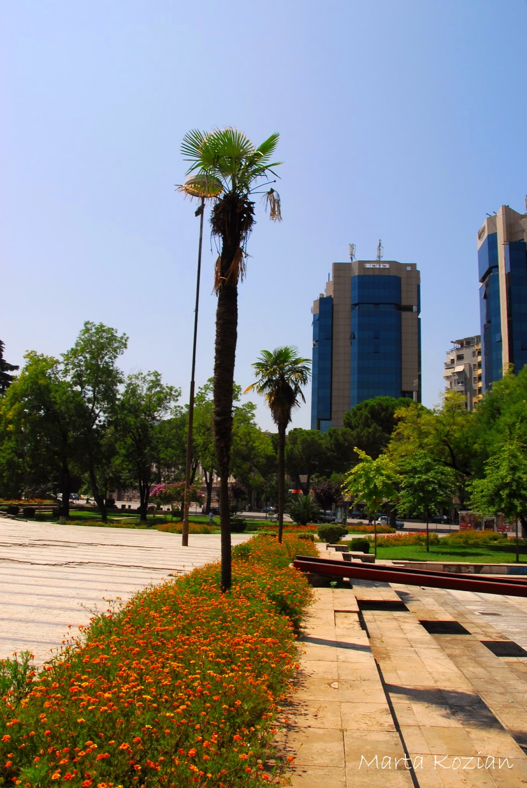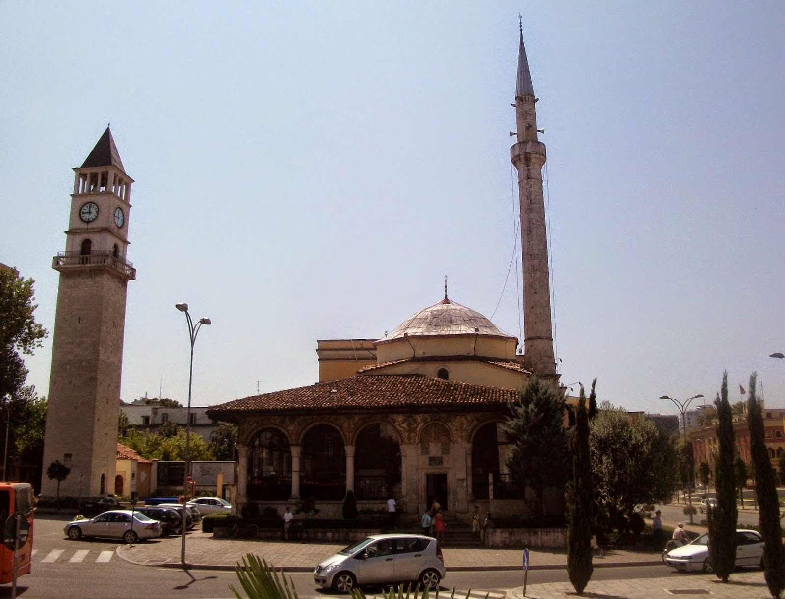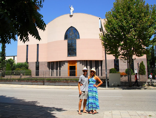 Jako pierwszą zobaczyliśmy Katedrę św. Pawła w Tiranie (alb. Katedralja e Shen Palit) - rzymskokatolicka katedra archidiecezji Tirany-Durrës w stolicy Albanii. Usytuowana nad brzegiem rzeki Lany. Obecnie największa świątynia katolicka w kraju. Jest to nowoczesna świątynia wybudowana w latach 2000-2001. We wnętrzu znajdują się witraże przedstawiające Matkę Teresę i papieża Jana Pawła II. Mieści się przy bulwarze Zhan D'Ark.