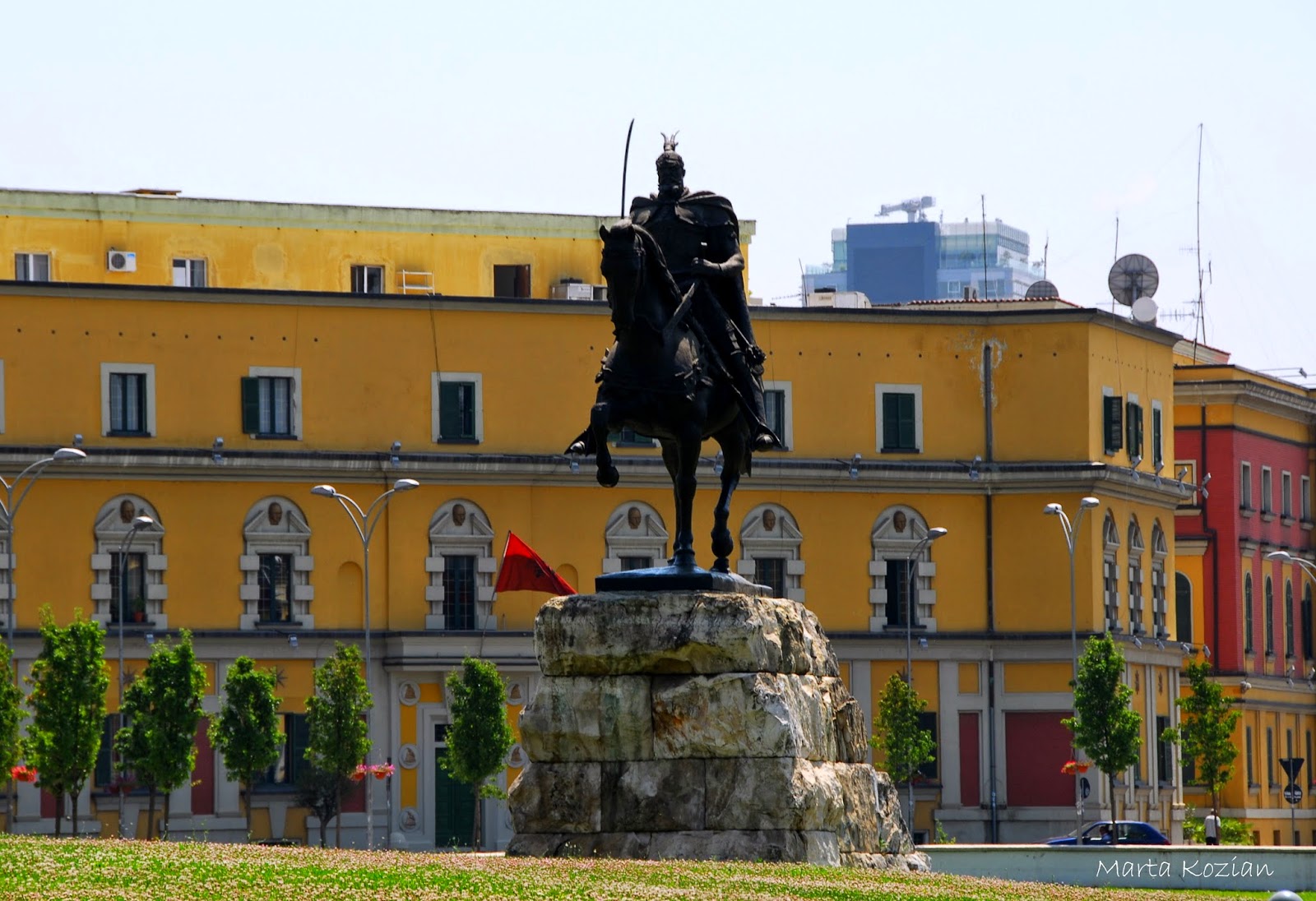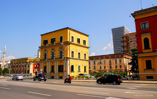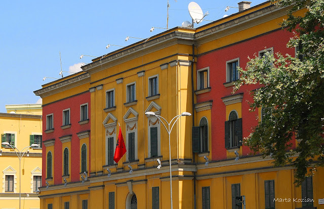 Będąc w Tiranie nie mogliśmy przejść obojętnie przez Plac Skanderbega. Plac był już niegdyś ogromny, ale został dodatkowo powiększony za czasów panowania komunistów. Jest głównym placem i centrum miasta. Otaczają go ważne budynki tj.: opera, meczet, muzea. Na środku znajduje się pomnik narodowego bohatera albańskiego - Skanderbega. W 1958 roku, w ramach "przyjaźni" Rosjan z Albańczykami postanowiono zbudować imponujący Pałac Kultury. W trakcie budowy jednak stosunki uległy pogorszeniu i dzieło dokończyli już chińscy budowniczy. Aktualnie wewnątrz znajduje się opera oraz muzeum historii. Mozaika na jego fasadzie przedstawia właśnie upływ albańskiej historii.