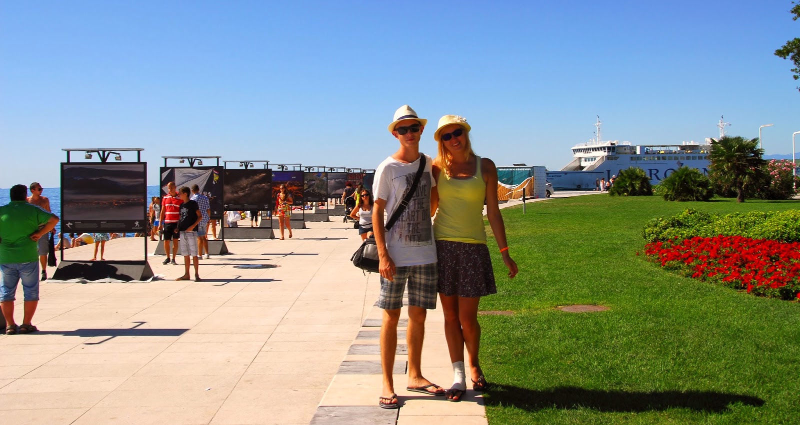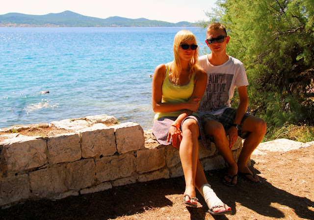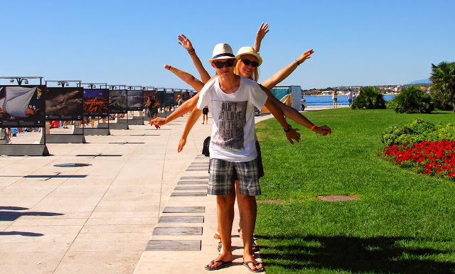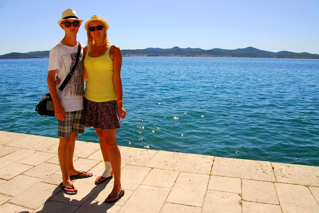 O godzinie 13 byliśmy już w kolejnym mieście, tym razem był to Zadar. Zaparkowaliśmy na dzikim parkingu przy sporych centrach handlowych. Bolek stwierdził, że zostaniemy tu na noc, bo będziemy mieć fajnego dzikusa. Od razu pobiegliśmy do sklepu i kupiliśmy Michałowi nowe japonki. Nie spodziewaliśmy się tylko, że do zabytkowego centrum miasta jest tak daleko. Marsz zajął nam około 40 minut.