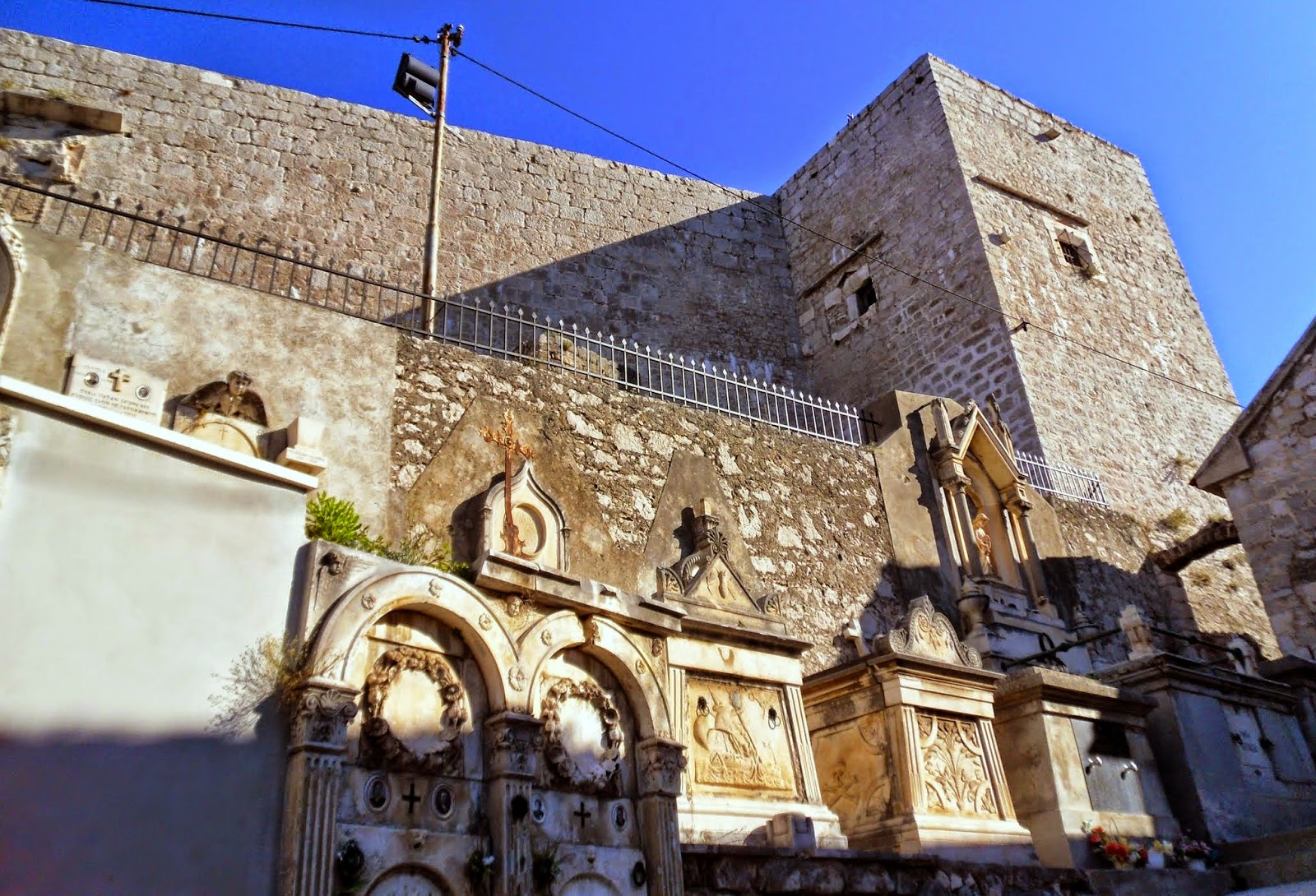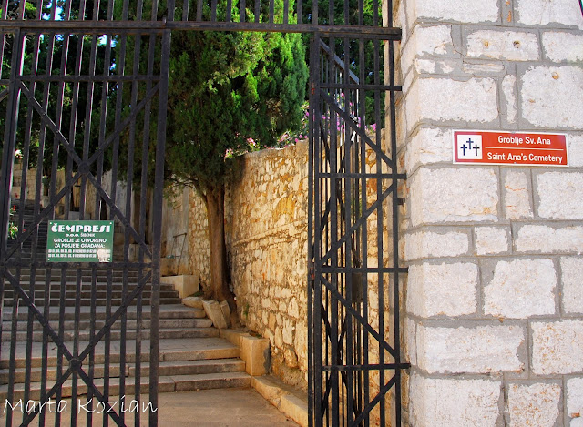 Pod murami twierdzy znajduje się cmentarz, na którym spoczywają najznamienitsi i najbogatsi obywatele tego miasta. Znajdują się tam przepiękne pomniki i płyty nagrobne, gdzie widać detale z różnych okresów historii. Obok nazwisk chorwackich, napotkać można i włoskie, a właściwie weneckie nazwiska, przypominające kto zbudował i sprawował nad tym miastem pieczę przez setki lat. Widoki z cmentarza na miasto zapierają dech w piersiach!