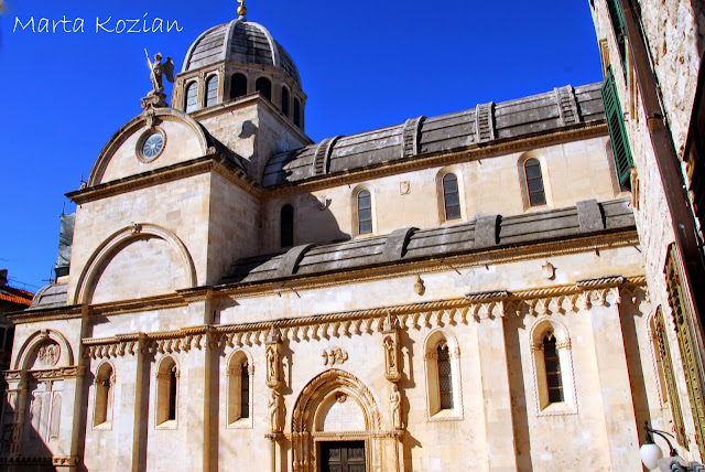 Najważniejszym zabytkiem renesansowej architektury w całej Chorwacji jest, wpisana w 2000 r. na Listę Światowego Dziedzictwa UNESCO, trójnawowa Katedra Św. Jakuba. Położona jest w samym centrum miasta, przy placu Trg Republike Hrvatske. Już z daleka katedra przyciąga wzrok, a to za sprawą fryzu dziwnych figur przedstawiających głowy z różnymi minami. Jest ich aż 74, ciągną się wokół apsyd. Należą do najbardziej wyjątkowych dzieł rzeźbiarza Juraja Dalmatinaca, który z początkiem lat 40. XV w. był głównym architektem katedry. Zapewne dlatego przed katedrą stoi jego okazały pomnik. Miłośnicy sztuki i architektury na pewno będą zachwyceni. Jest to bowiem idealny przykład przejścia od weneckiego gotyku do toskańskiego renesansu. Trzy apsydy i kopuła, których budowa ciągnęła się ponad sto lat są zachwycające, ale i tak największe wrażenie robi wnętrze bazyliki.