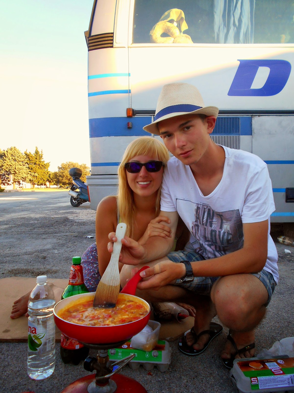 Po powrocie do autokaru zostawiliśmy zbędne rzeczy i poszliśmy na zakupy. Stwierdziliśmy, że to świetnie miejsce na zrobienie jajecznicy :) Kupiliśmy więc wszystkie niezbędne składniki i zabraliśmy się do roboty!