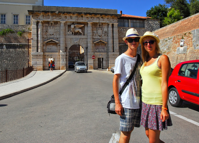 I w końcu dotarliśmy do Kopnena vrata - jest to renesansowa brama w formie łuku triumfalnego powstała w 1543 roku. Zaprojektowana przez słynnego architekta M. Sanmicheliego, stoi w południowo-wschodniej części starówki przy zatoczce Foša. W czasach, gdy Zadarem władała Wenecja, była to najważniejsza brama. Niegdyś połączona z miastem za pomocą zwodzonego mostu.