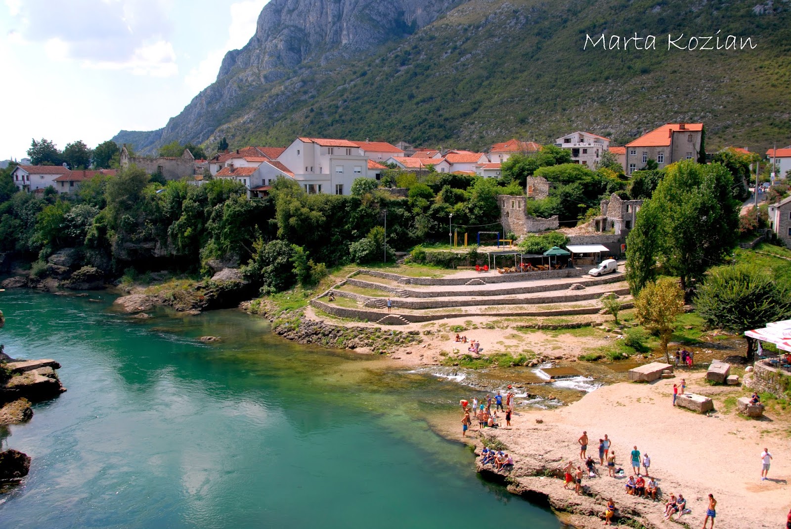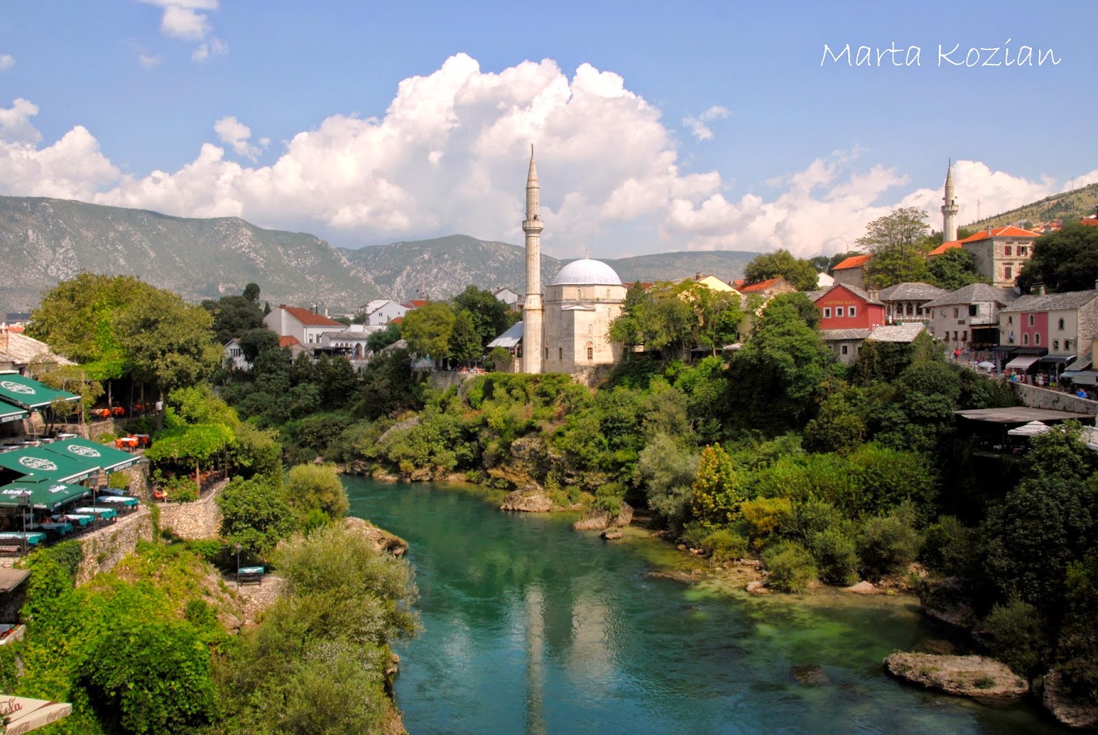 Pomimo tego, że w Mostarze byliśmy już drugi raz, to wciąż uważamy, że jest on przepięknym miastem. Rzeka przepływająca w dole ma tak niezwykły kolor, że moglibyśmy się nią non stop zachwycać, a jeśli dodać do tego otaczające miasto góry... po prostu cud!